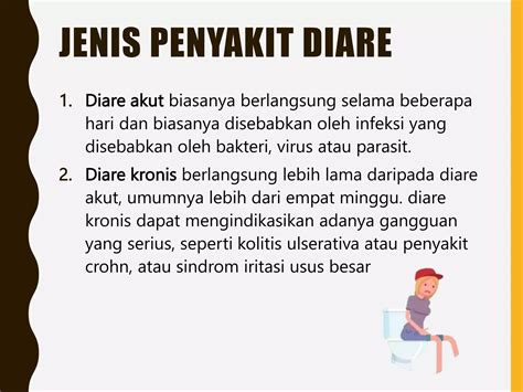 Diare akut adalah jenis diare yang berlangsung kurang dari 14 hari. Diare akut biasanya disebabkan oleh infeksi virus, seperti rotavirus atau norovirus. Gejala diare akut dapat berupa diare encer, muntah, demam, dan sakit perut.