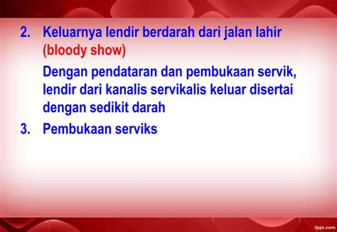 Keluarnya lendir berdarah atau yang disebut juga dengan "show" merupakan tanda bahwa serviks mulai membuka. Lendir ini biasanya berwarna merah muda atau coklat dan bercampur dengan darah.